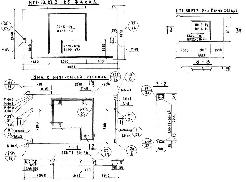 НТ1-50.27.3-2бл   Наружная стеновая панель торцевая по Серии 1.132-1.